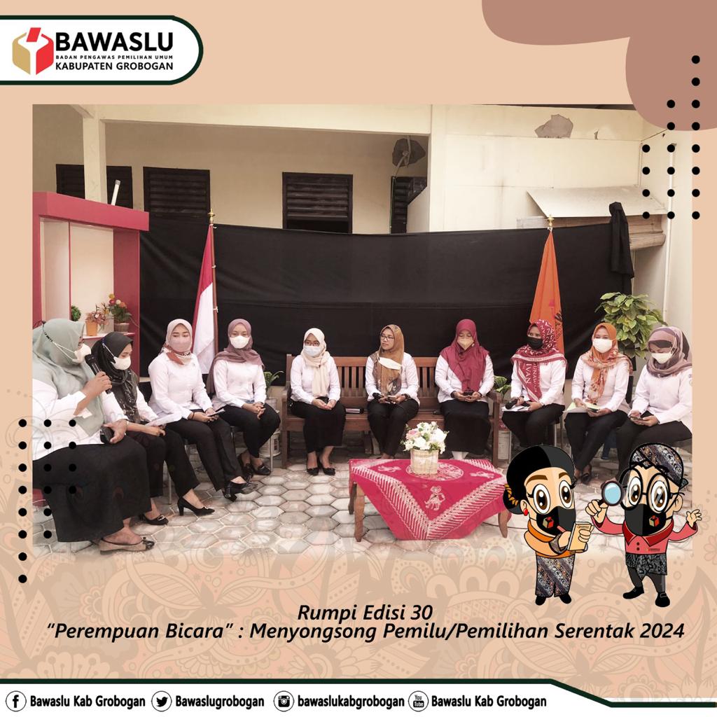 Grobogan - Badan Pengawas Pemilihan Umum (Bawaslu) Kabupaten Grobogan menggelar Rembug Pemilu (Rumpi) yang bertepatan dengan hari ibu, Rabu (22/12/2021). Acara ini disiarkan langsung melalui kanal youtube Bawaslu Kabupaten Grobogan.