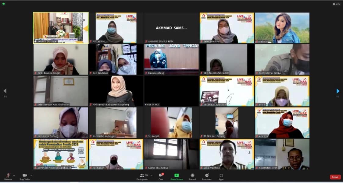 Peserta webinar Pojok Pengawasan Bawaslu Kabupaten Grobogan, Selasa (08/03/2022).