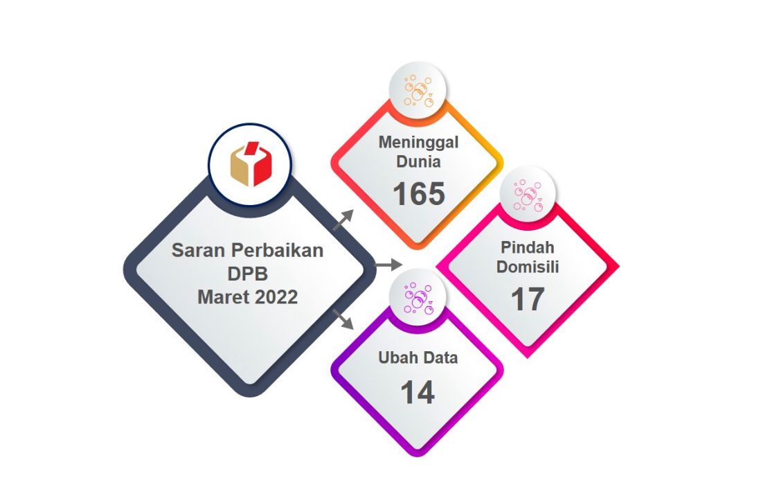 Pada bulan Maret 2022 ini, saran perbaikan yang disampaikan kepada KPU Kabupaten Grobogan adalah potensi pemilih tidak memenuhi syarat dan potensi pemilih ubah data, yaitu :