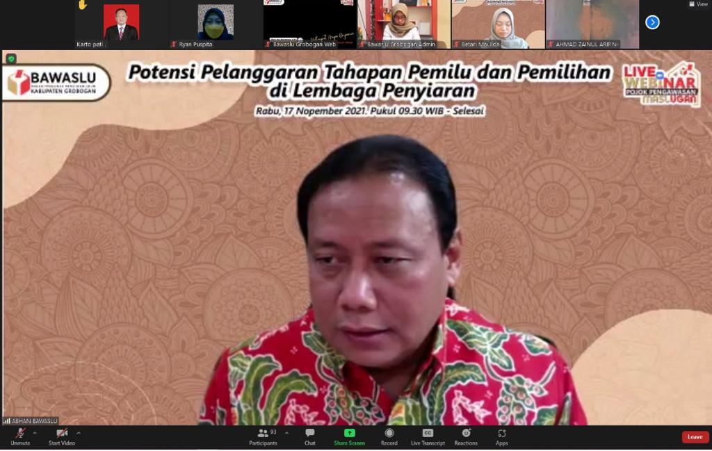Webinar ini merupakan salah satu ikhtiar Bawaslu Kabupaten Grobogan dalam persiapan pengawasan tahapan Pemilu Pemilihan di Tahun 2024.