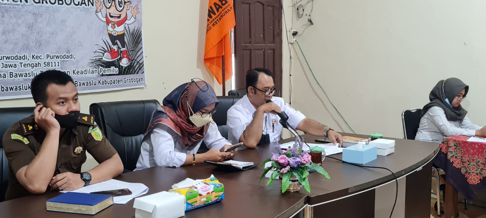 Rapat Koordinasi Penanganan Pelanggaran diadakan oleh Badan Pengawas Pemilihan Umum (Bawaslu) Kabupaten Grobogan pada Rabu, tanggal 15 Juni 2022 di aula kantornya. Turut hadir dalam acara tersebut, Widhiarso Nugroho (Kejaksaan Negeri Grobogan), Abdul Qadir (Kepolisian Resor Grobogan), Pardi (Badan Kepegawaian Pendidikan dan Pelatihan Daerah), Bangkit Setyo P.W (Satuan Polisi Pamong Praja) serta Sulistyorini (Komisi Pemilihan Umum).
